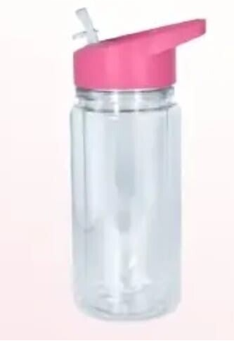 Dubbelwandige drinkbeker vit snowglobe effect. Met donkerroze dop